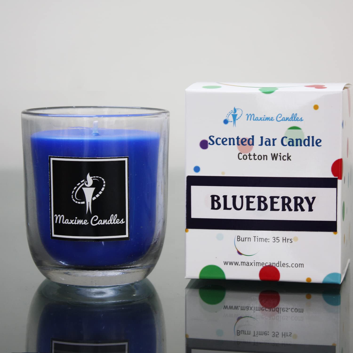 - This Blueberry scented aroma candles have a long burn time of 35 hrs dimensions : 8.5 cm (h) x 6.5 cm (d)