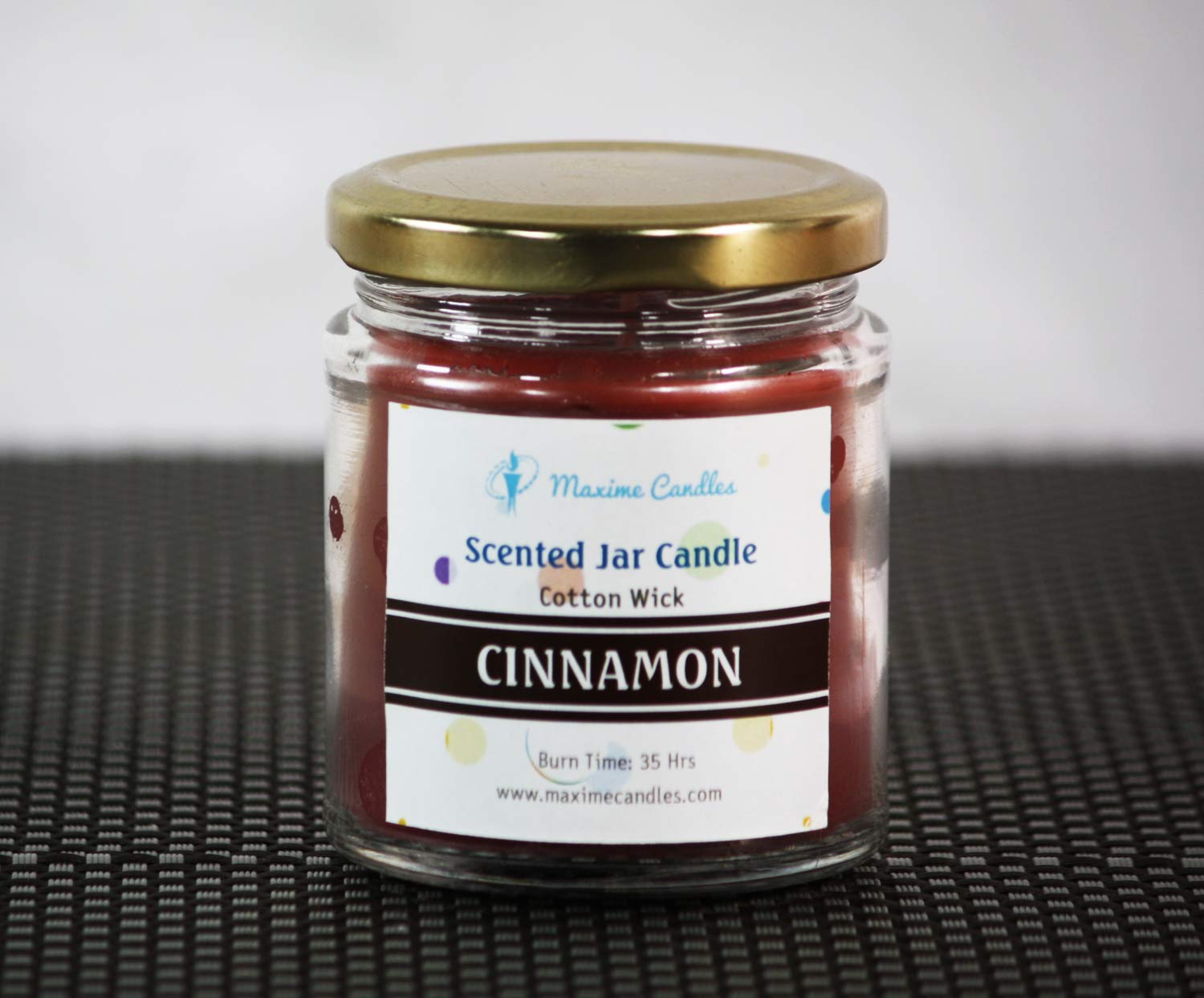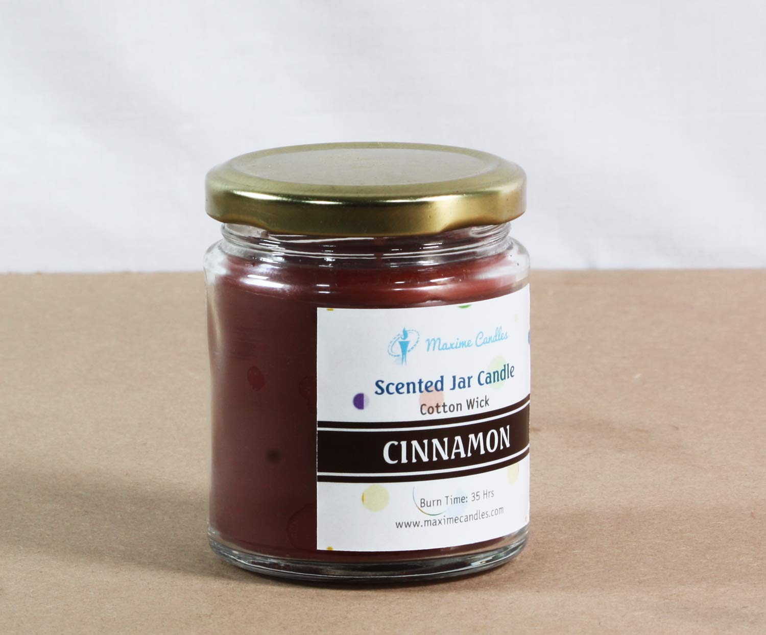 - This Cinnamon scented aroma candles have a long burn time of 35 hrs dimensions : 8.5 cm (h) x 6.5 cm (d)