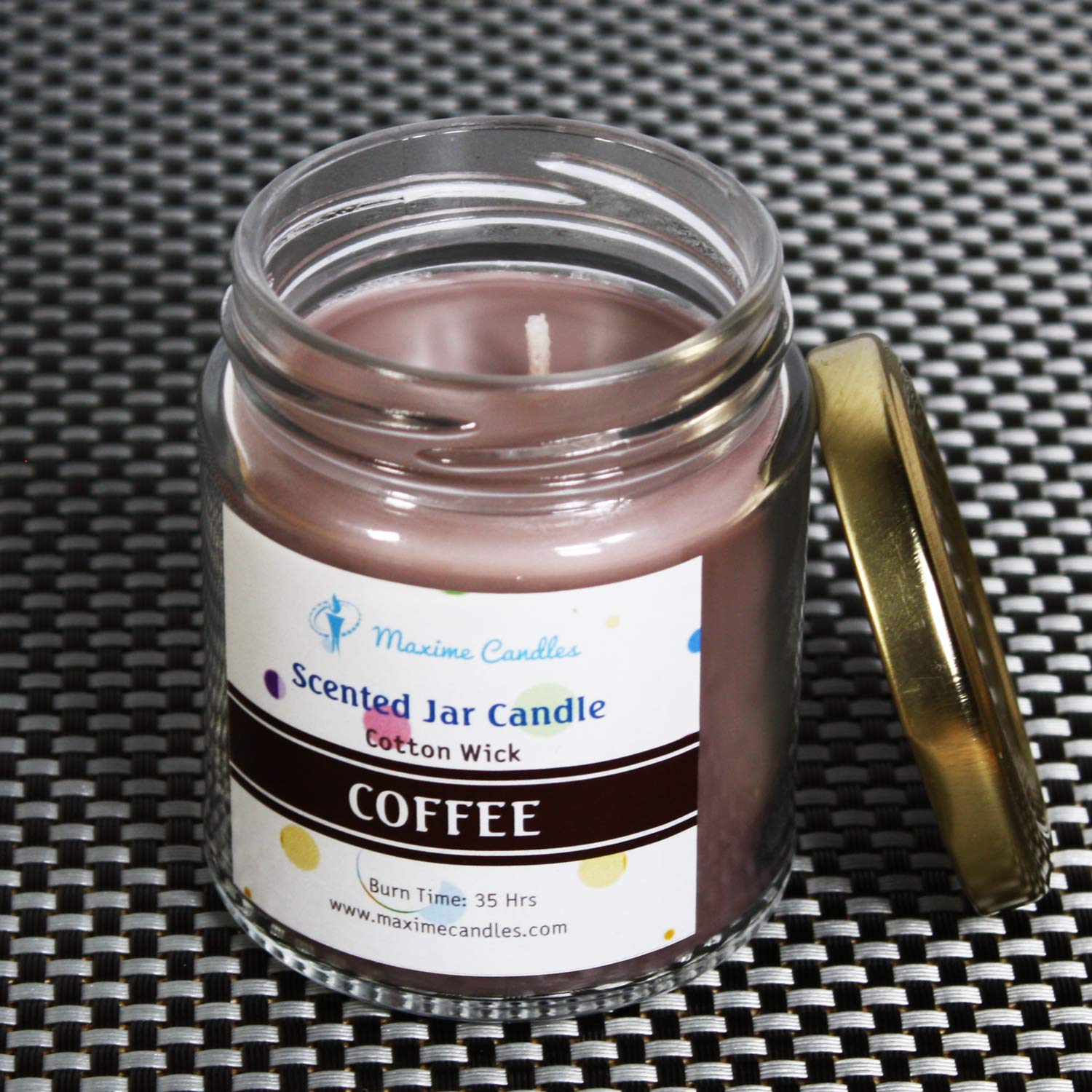 - This Coffee scented aroma candles have a long burn time of 35 hrs dimensions : 8.5 cm (h) x 6.5 cm (d)