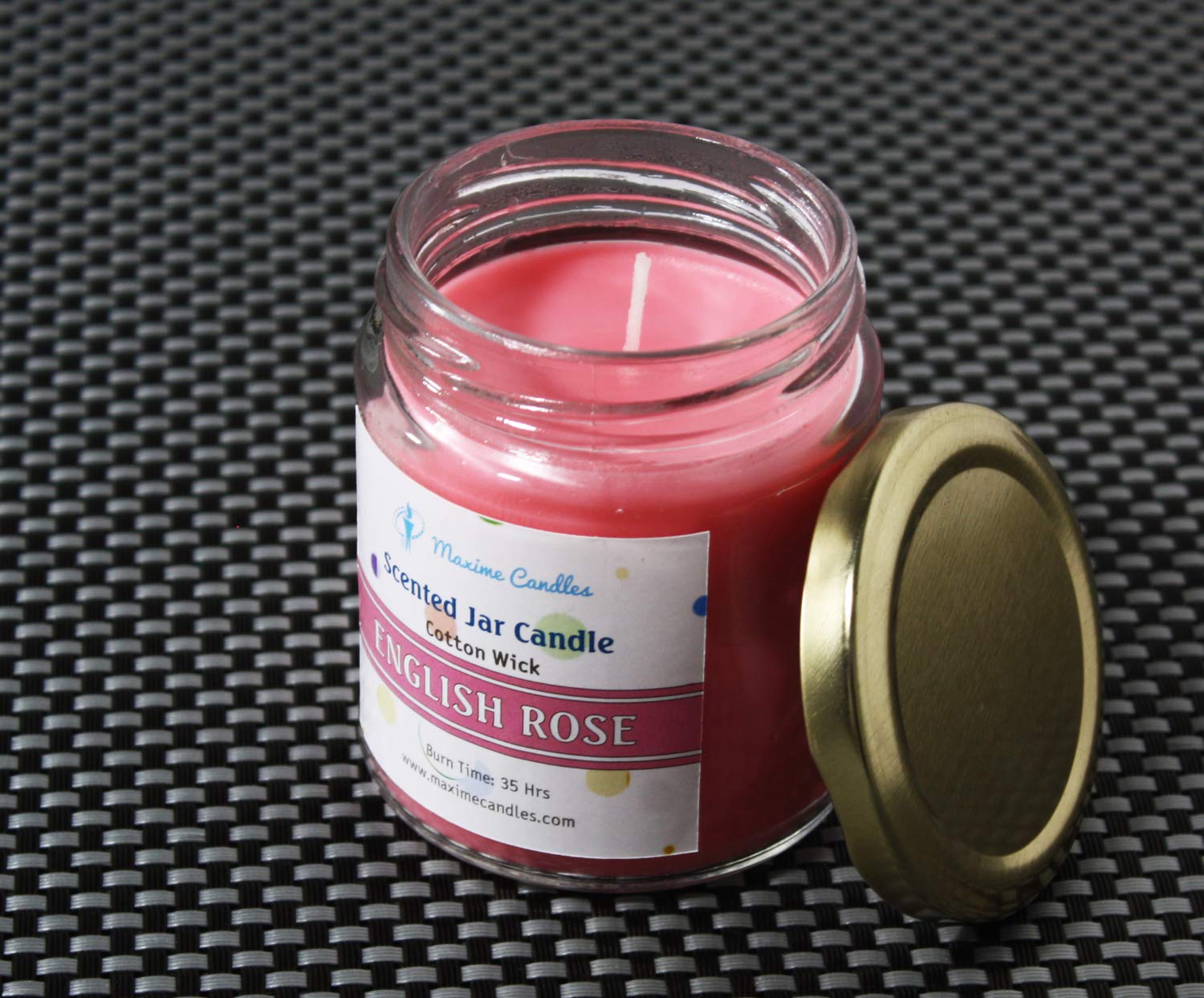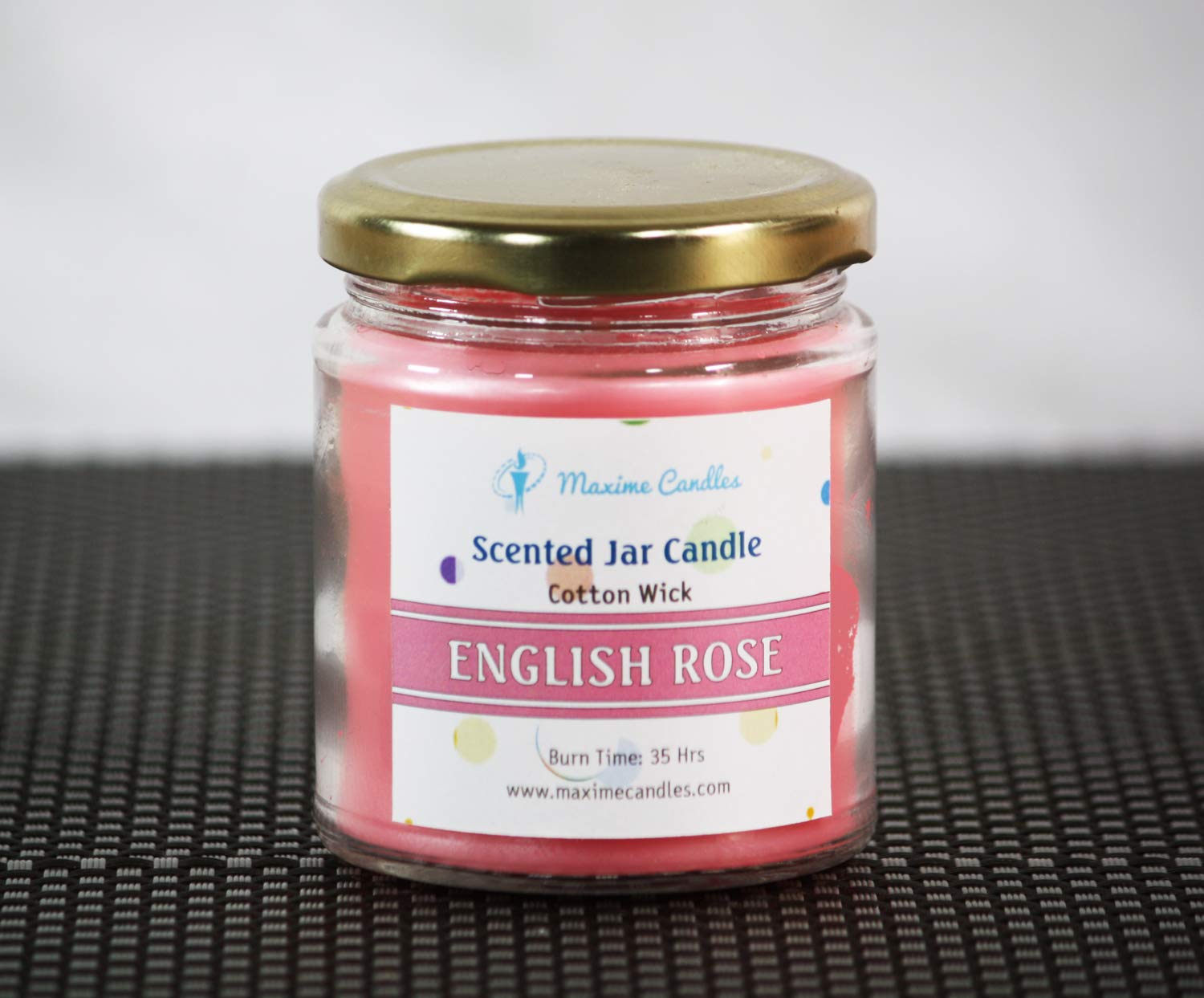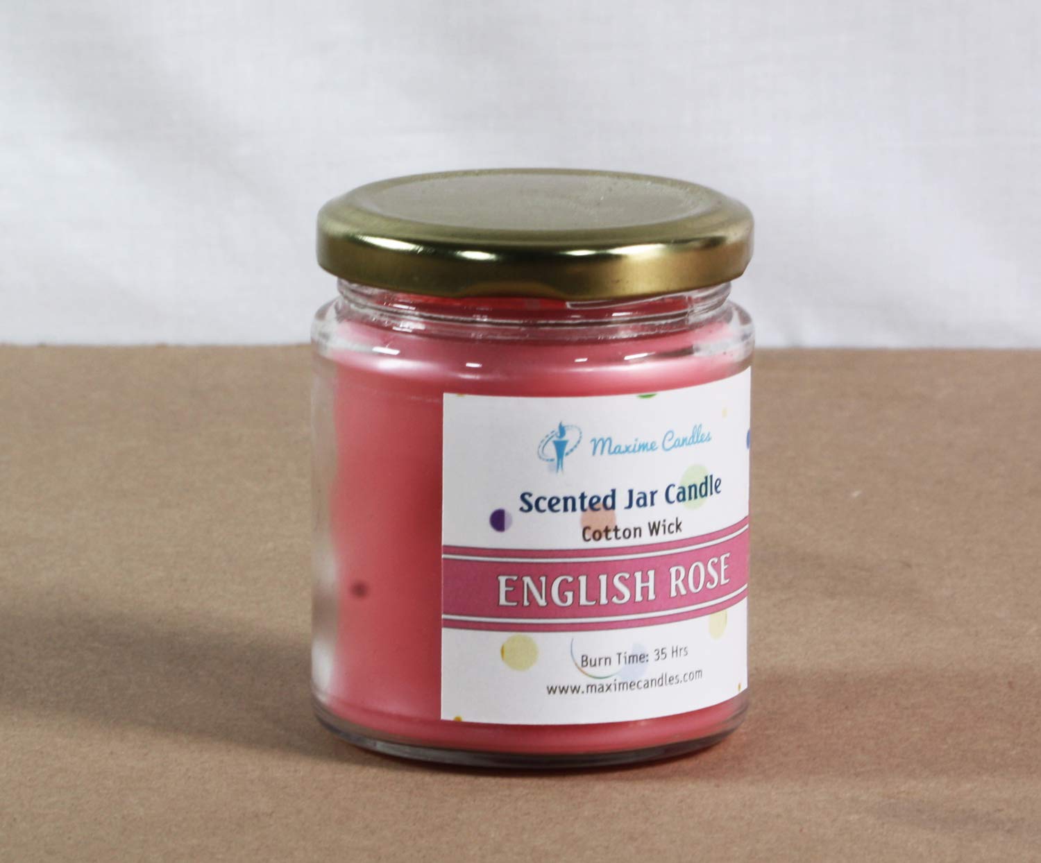 - This English Rose scented aroma candles have a long burn time of 35 hrs dimensions : 8.5 cm (h) x 6.5 cm (d)