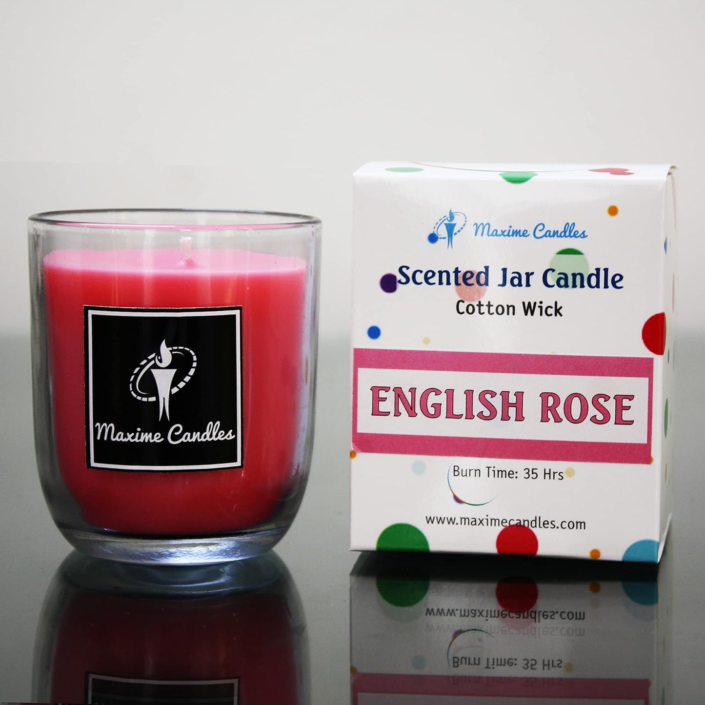 - This English Rose scented aroma candles have a long burn time of 35 hrs dimensions : 8.5 cm (h) x 6.5 cm (d)