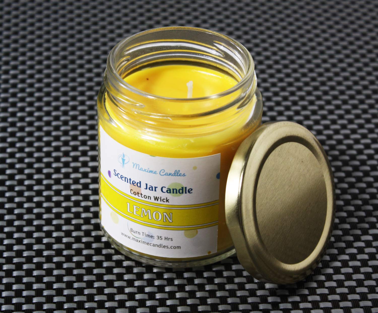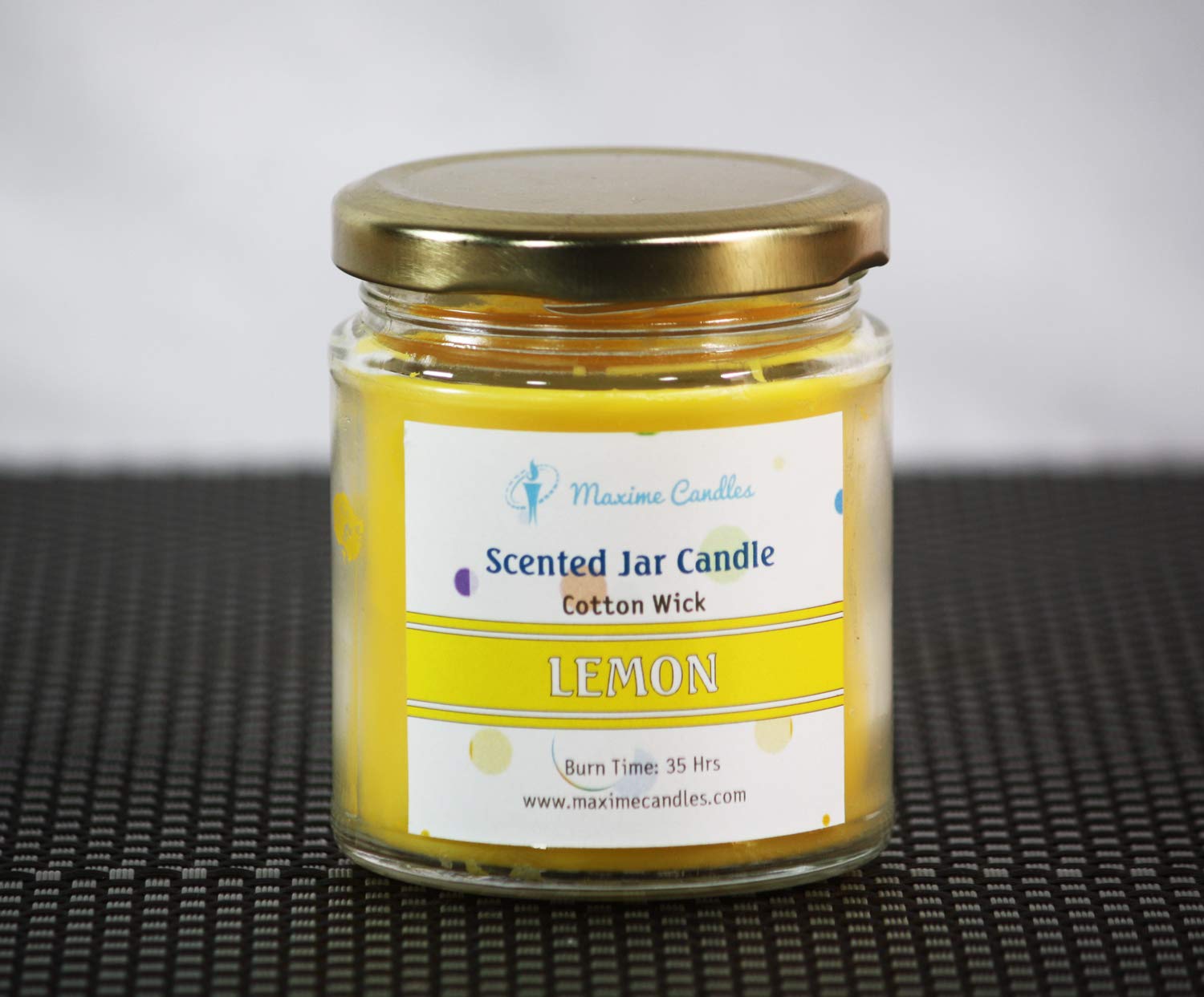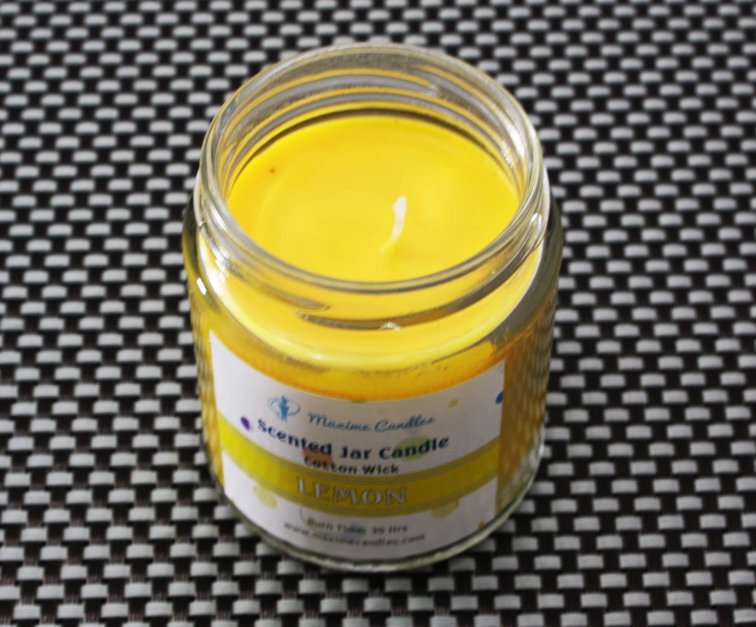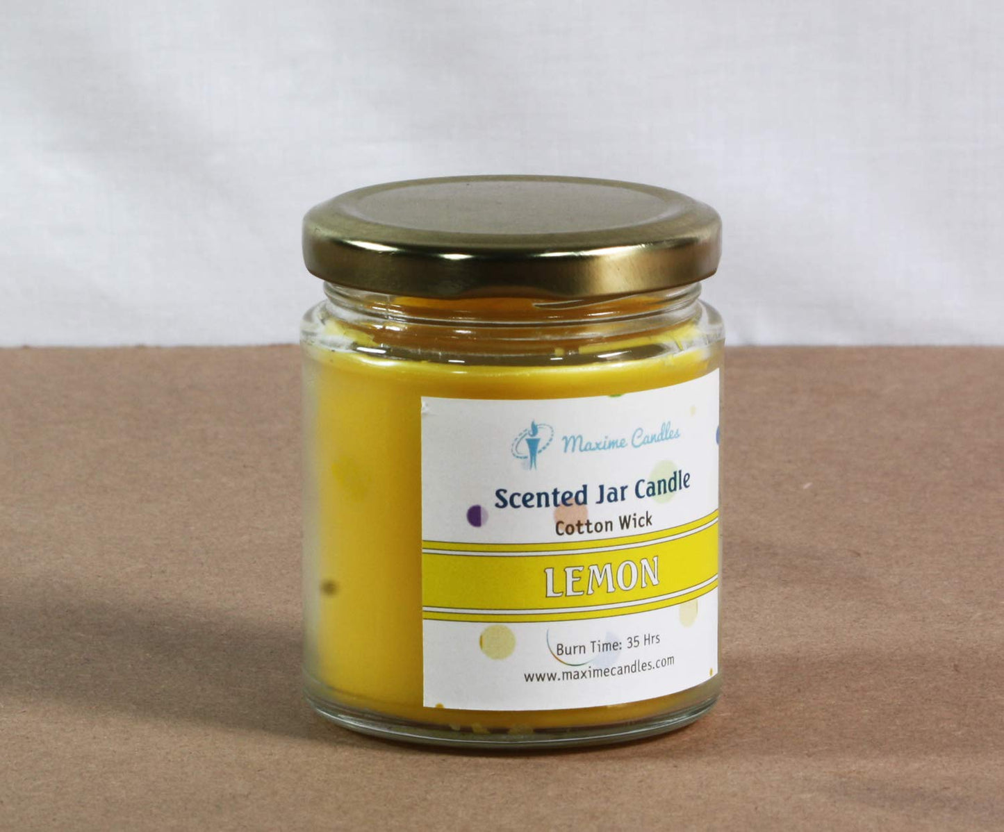 - This Lemon scented aroma candles have a long burn time of 35 hrs dimensions : 8.5 cm (h) x 6.5 cm (d)
