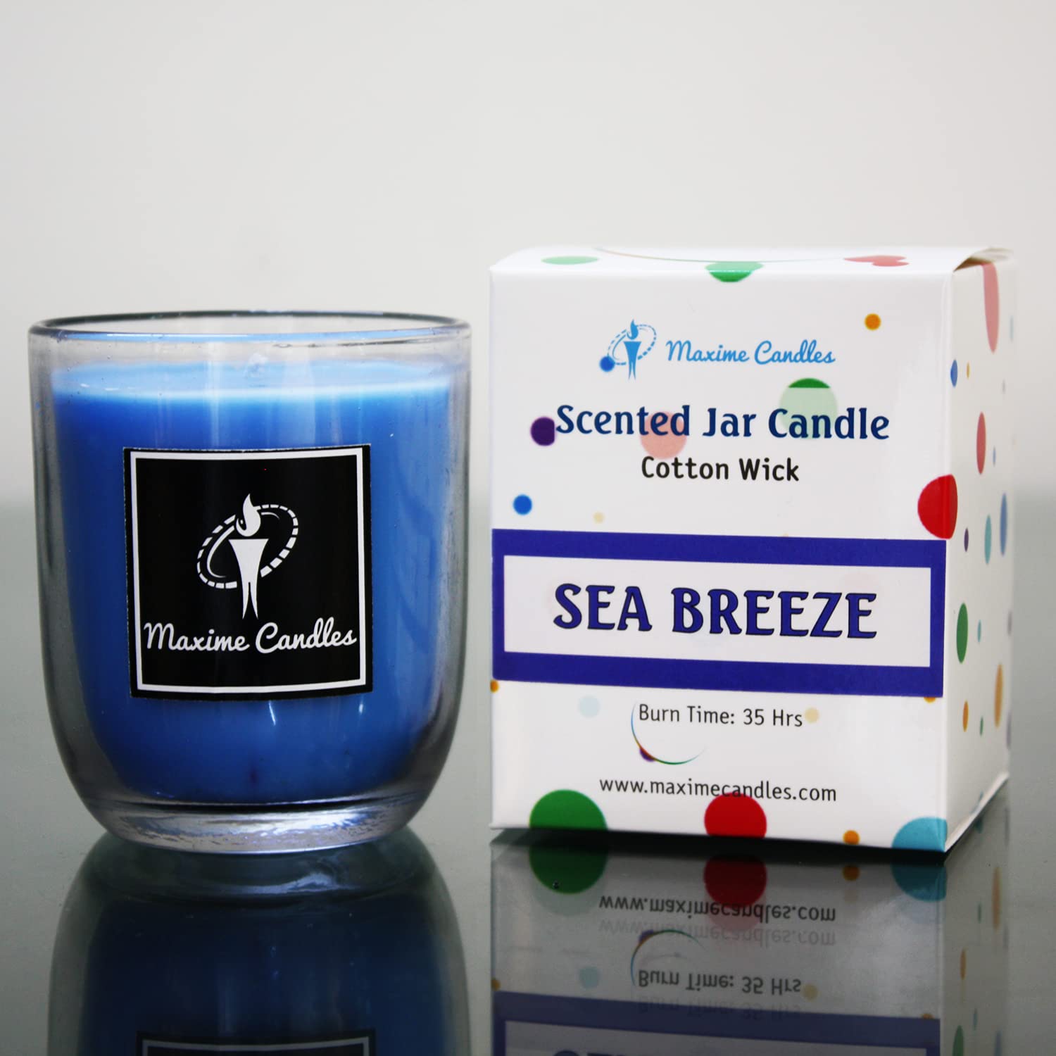 - This Seabreeze scented aroma candles have a long burn time of 35 hrs dimensions : 8.5 cm (h) x 6.5 cm (d)