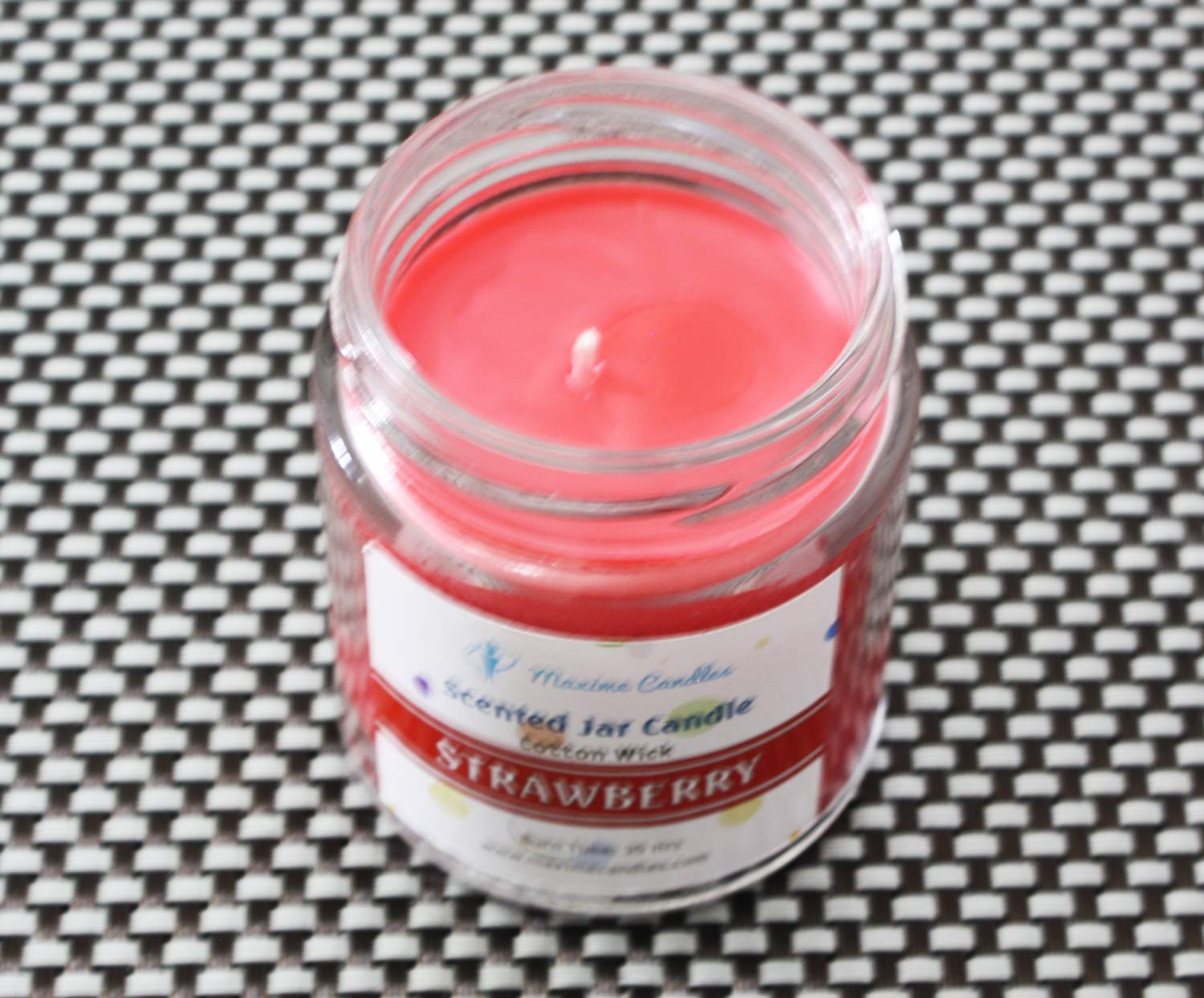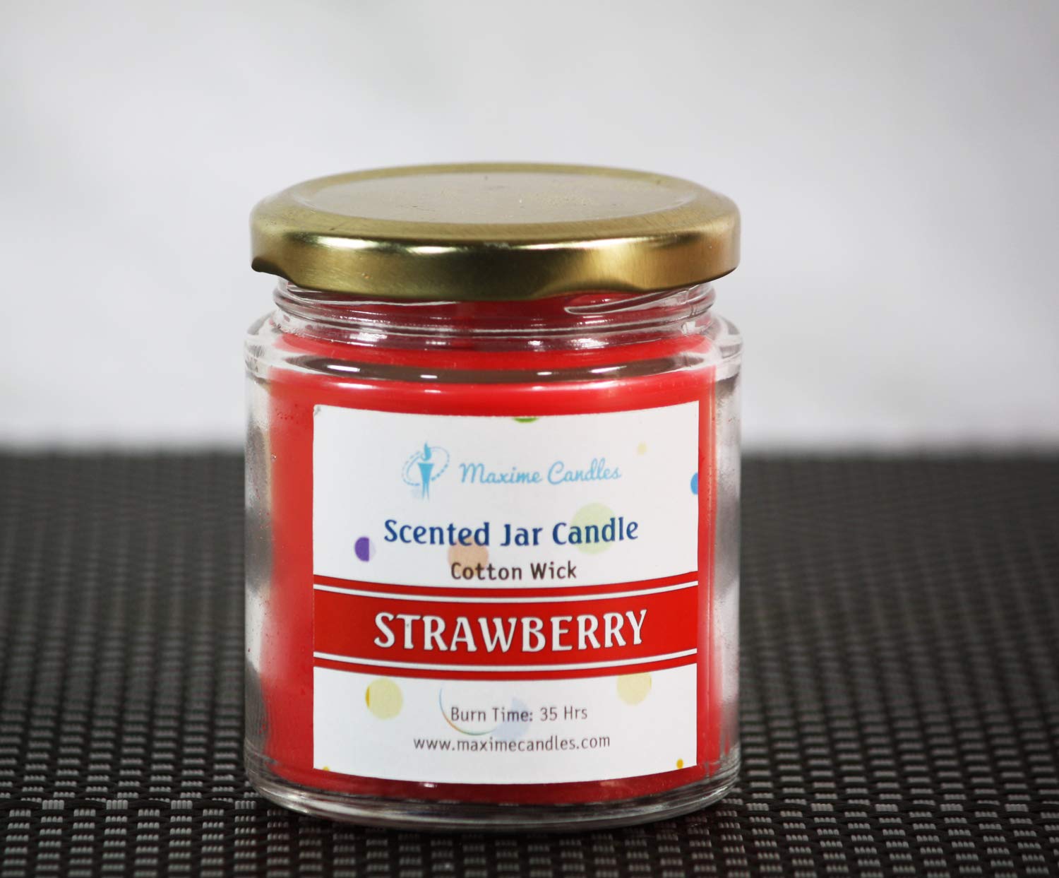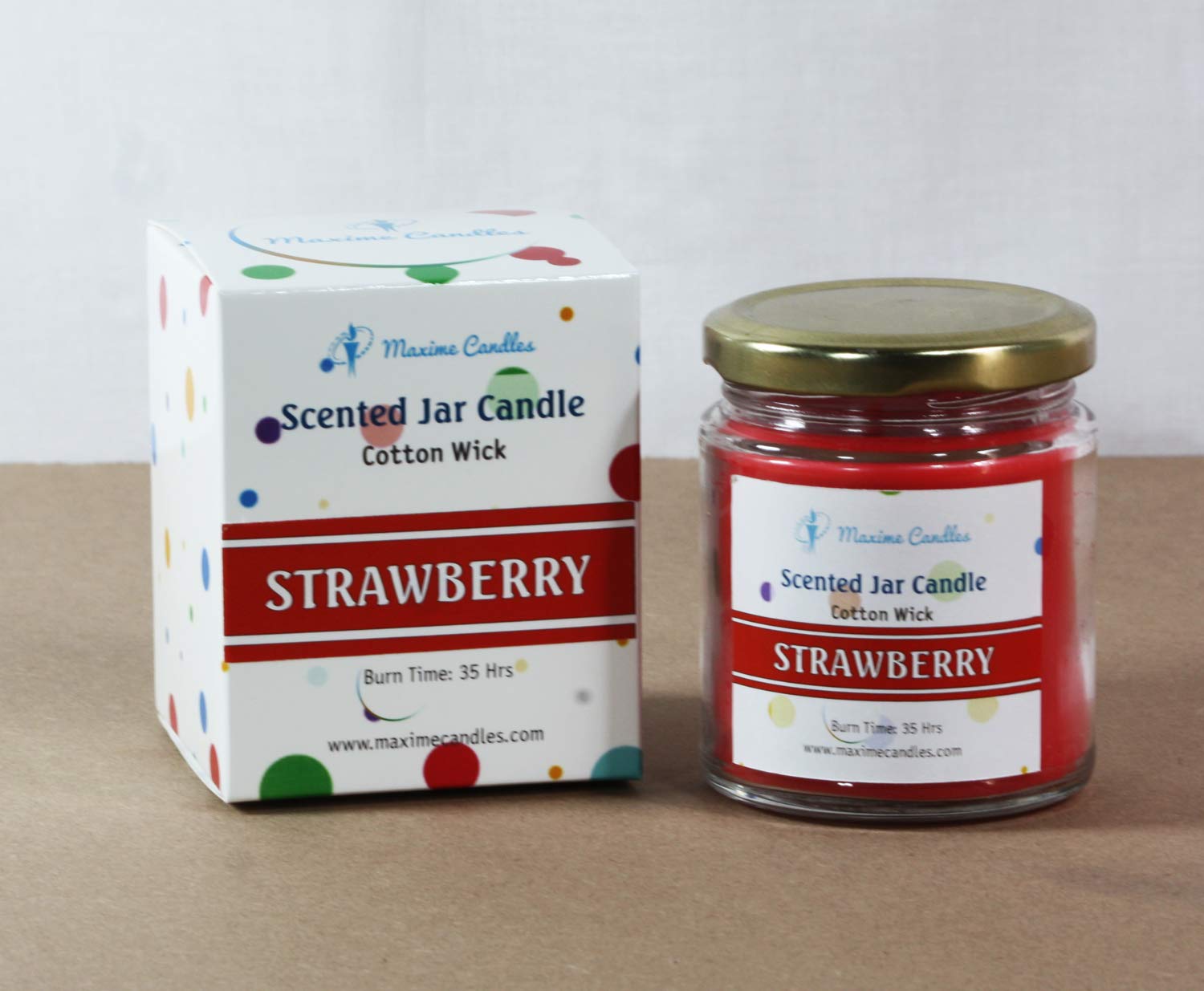 - This Strawberry scented aroma candles have a long burn time of 35 hrs dimensions : 8.5 cm (h) x 6.5 cm (d)