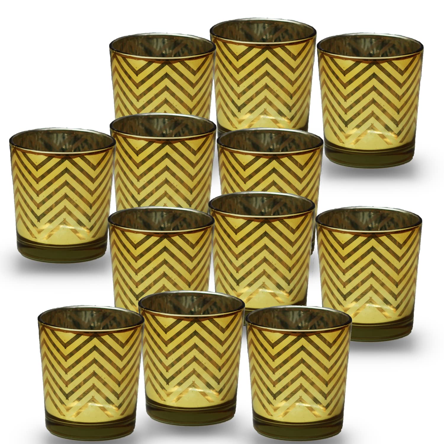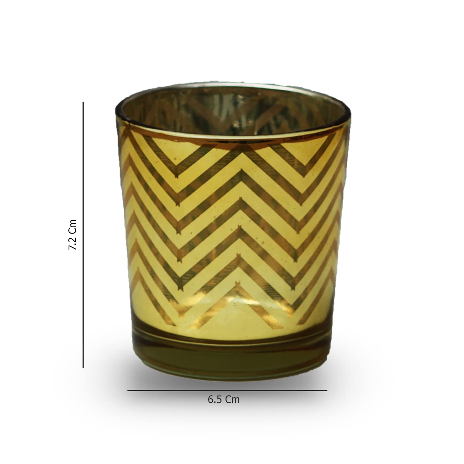 - Enhance the ambiance of your space with our exquisite Herringbone Pattern Tealight Candle Holder in a luxurious gold finish.