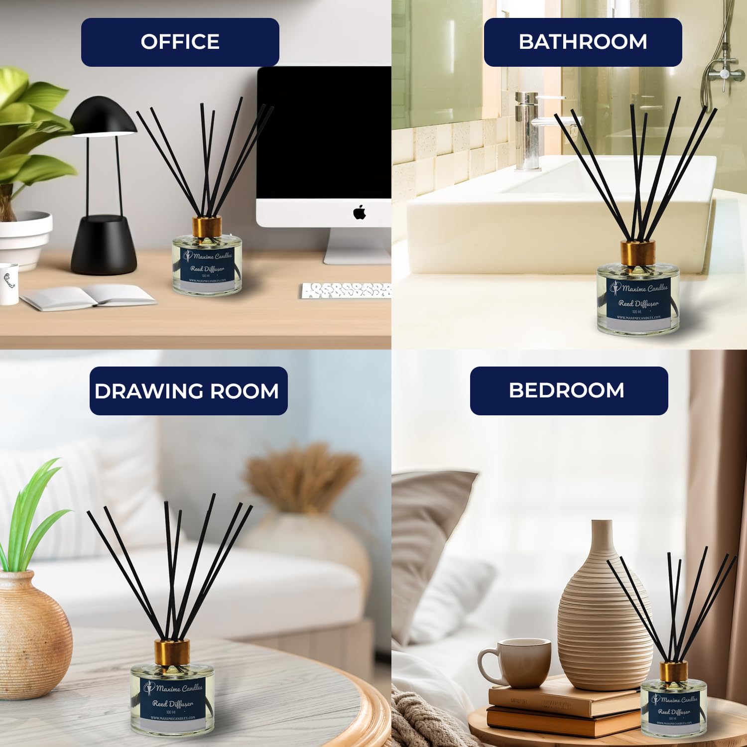 - Maxime Candles Reed Diffuser Set - designed to fill your space with long-lasting fragrance and elegance. With a sleek and modern design, our reed diffuser sets seamlessly blend into any decor, making them perfect for homes, offices, or any space in need of a refreshing aroma